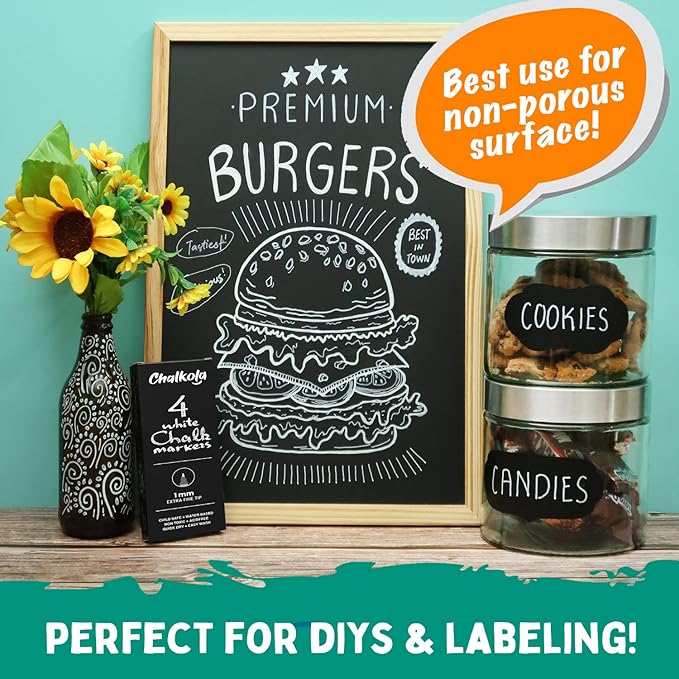 - Long Lasting Skinny Chalk Markers - While other pens crack under heavy use, our richly pigmented chalk marker pen set stays fray free.