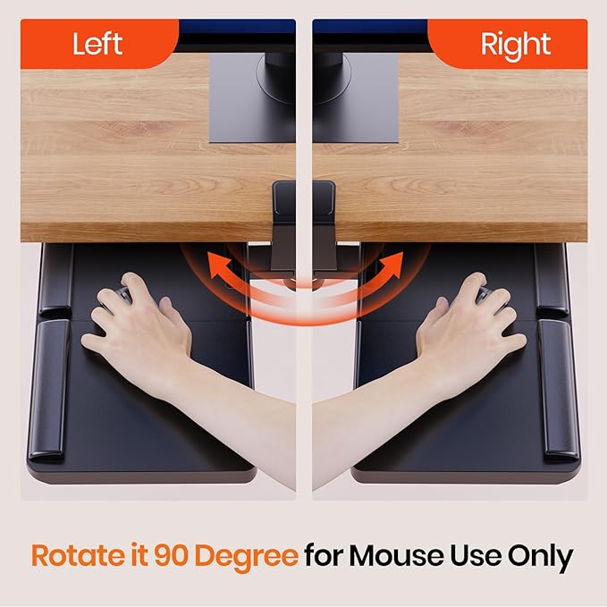 - Ergonomic Comfort - The Klearlook keyboard tray features an adjustable tilt angle, allowing users to find their perfect typing position. (Keyboard tray Height is not adjustable) This ergonomic design promotes a healthier, more comfortable typing experience, reducing the risk of strain during long work sessions.