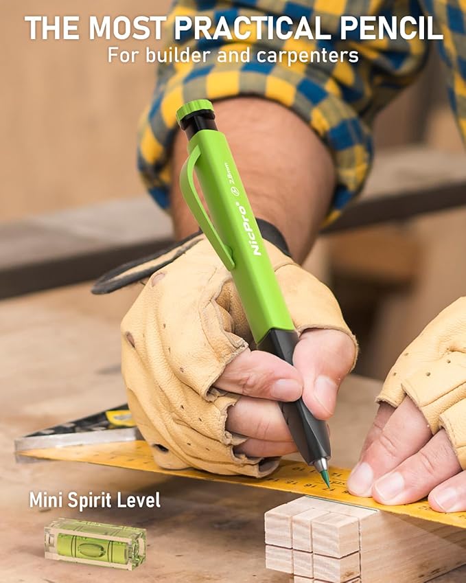 Nicpro 6 Pack Upgraded 3-IN-1 Carpenter Pencil Set with Finger Grip, Construction Pencils with 54 Refill & Mini Spirit Level, Deep Hole Carpenter Tool, Mechanical Carpenter Pencil for Woodworking