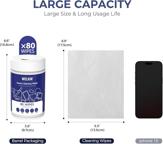 WELKIN 80 * 2 Electronics Cleaning Wipes - Non Toxic Screen Cleaner, Streak Free Touchscreen Cleaning for All Phones, Laptop, Computer, TV and Car,2 X Microfiber Cloth Included