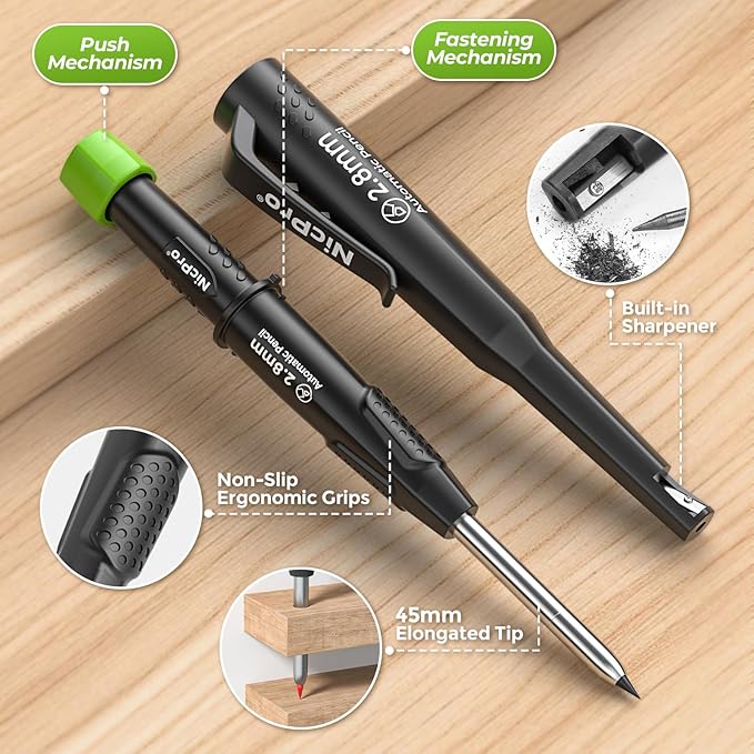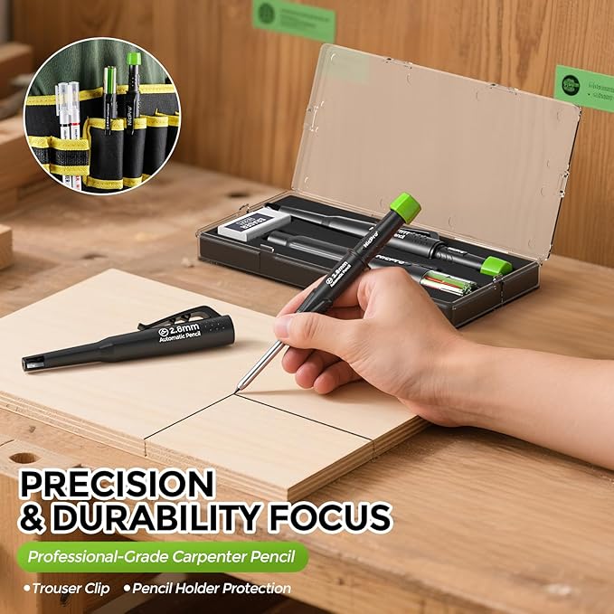 - Job-Site Ready Design: Nicpro woodworking pencils built to withstand rugged construction use, reliable material resists drops, wear, and daily abuse. Included Nicpro site holster and trouser clip—keep your work pencil within arm’s reach at all times, whether on ladders, in workshops, or across busy job sites